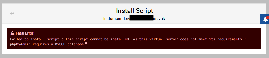- Install using the Virtualmin Install Script, using the database you just created, to following location www.example.com/apps/phpmyadmin/