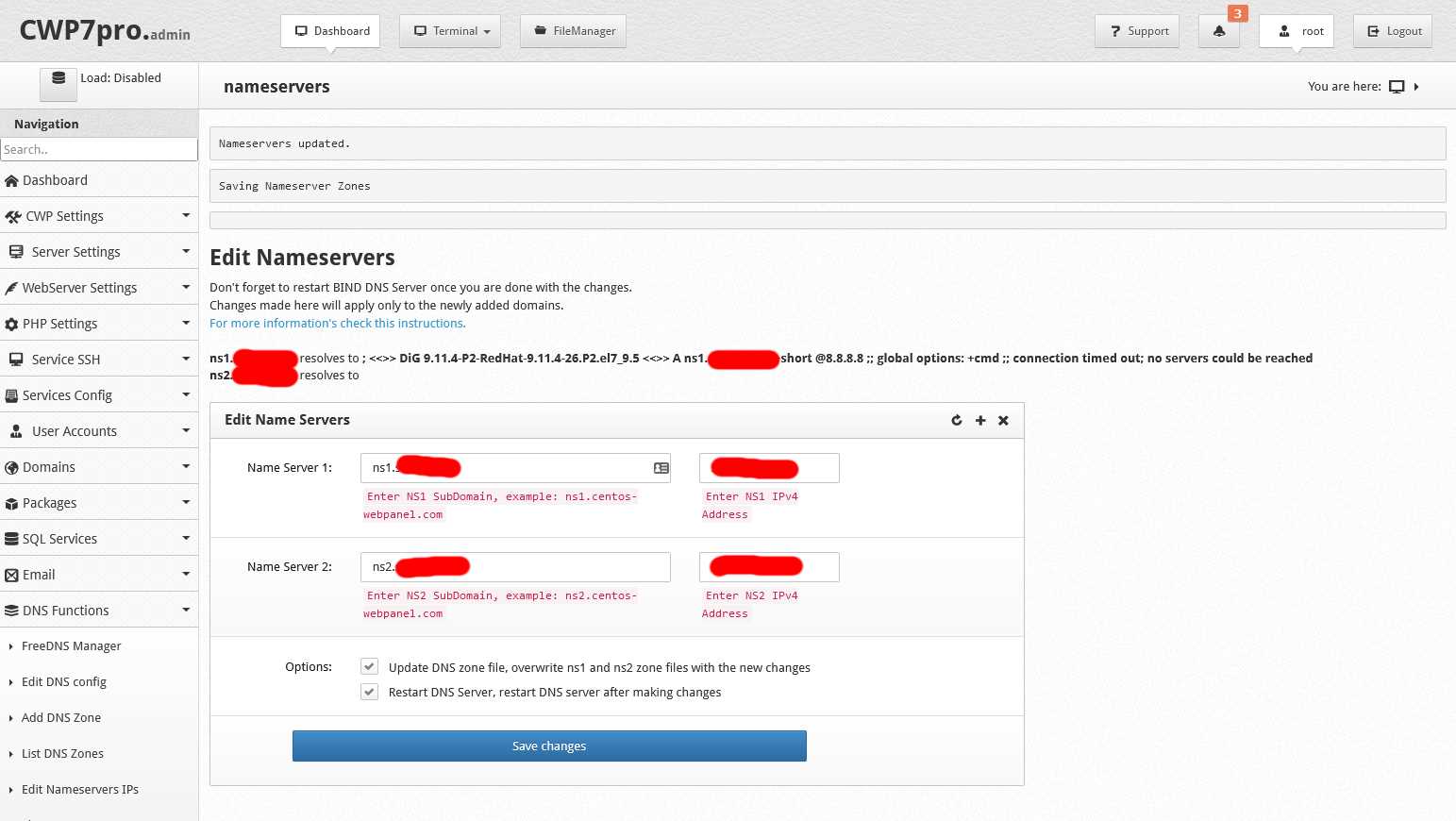 - The intial setup for cwp does not create the DNS zone for the server, it only happens after you have refreshed the server hostname. This is either a bug or by design.